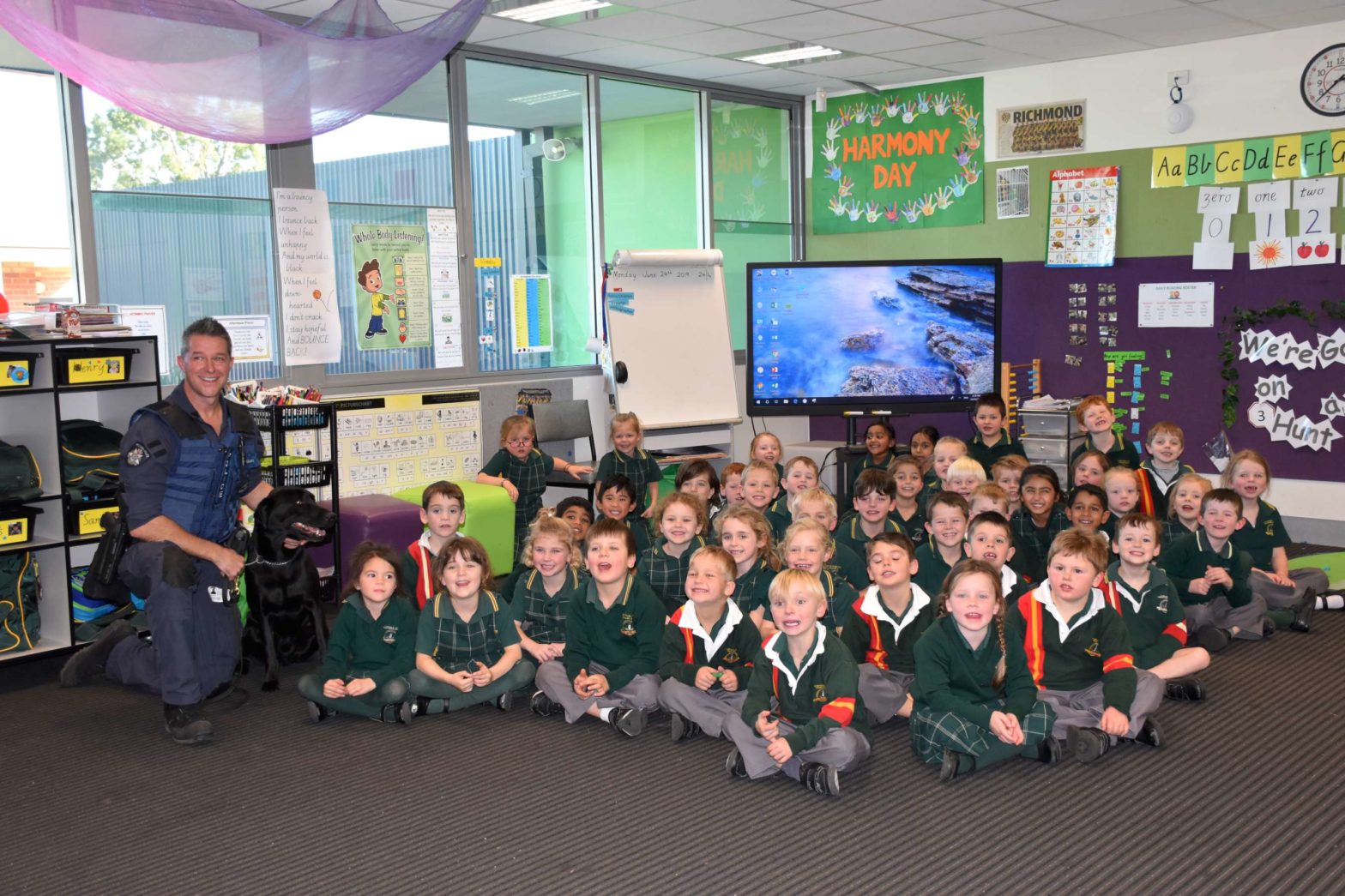 This afternoon the Preps had a special visit from Brad and his co-worker Kevin (a 5 year old black Labrador) who work at the Dog Squad in Melbourne. Brad explained to the students that dogs and handlers have important jobs and carry out specific tasks such as tracking offenders, or detecting explosives or drugs. The […]